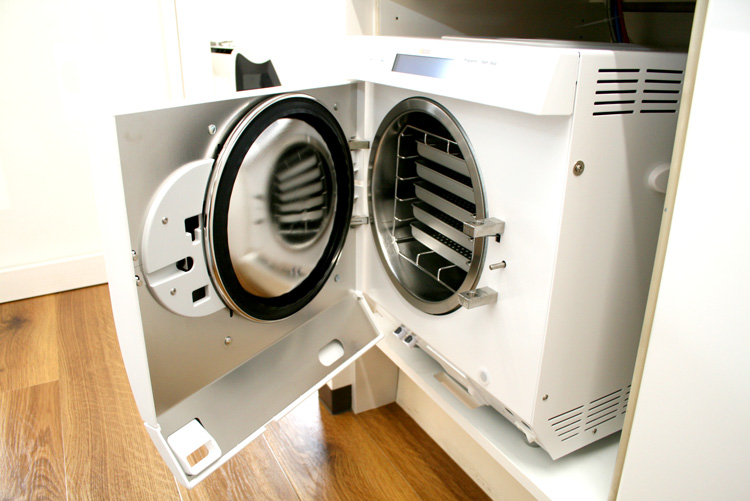 通常使われる鏡、ピンセットはもちろんのこと、細かい器具まで、厳しいヨーロッパ基準の「オートクレーブ」を使用し滅菌処理をしています。